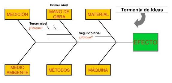 Se conoce también como “Diagrama de Ishikawa” (por su creador, el Dr. Kaoru Ishikawa) y se utiliza en las fases de diagnóstico y búsqueda de las causas del problema, ya que ayuda a graficar dichas causas y analizarlas.