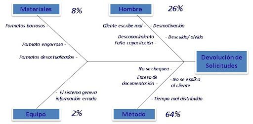 Ejemplo 4.- Análisis para detectar las causas de la devolución de solicitudes a clientes.