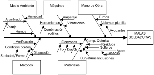 Ejemplo 3.- Análisis para detectar las causas de malas soldaduras en piezas.
