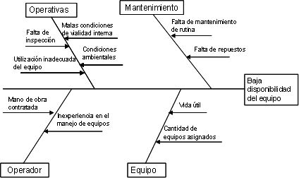 Ejemplo 2.- Análisis para detectar las causas del bajo valor del Factor de Disponibilidad de un equipo.